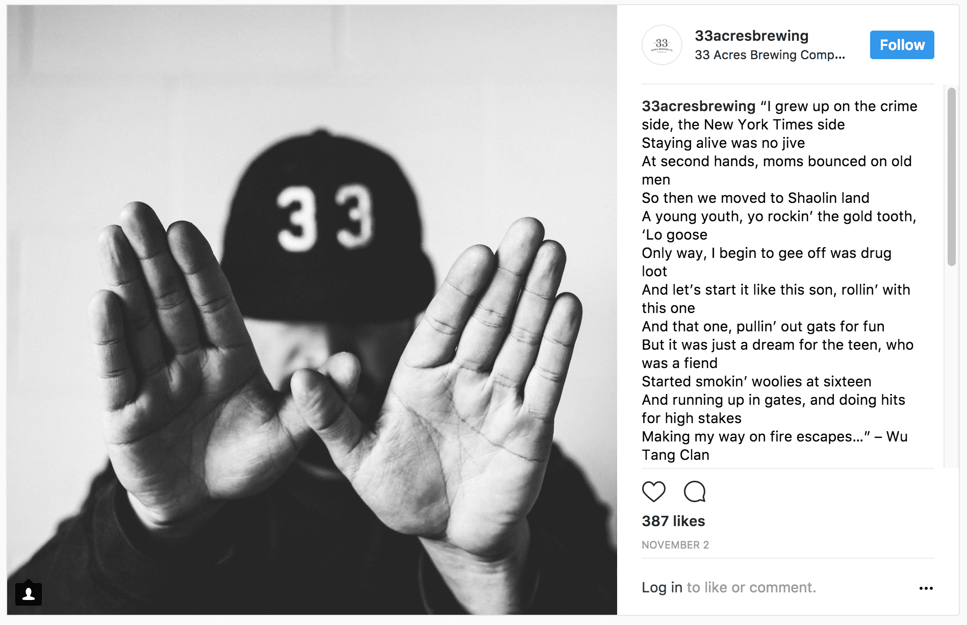33 Acres Brewing Company, with 33.1K followers, is one of our favorites for smaller markets.