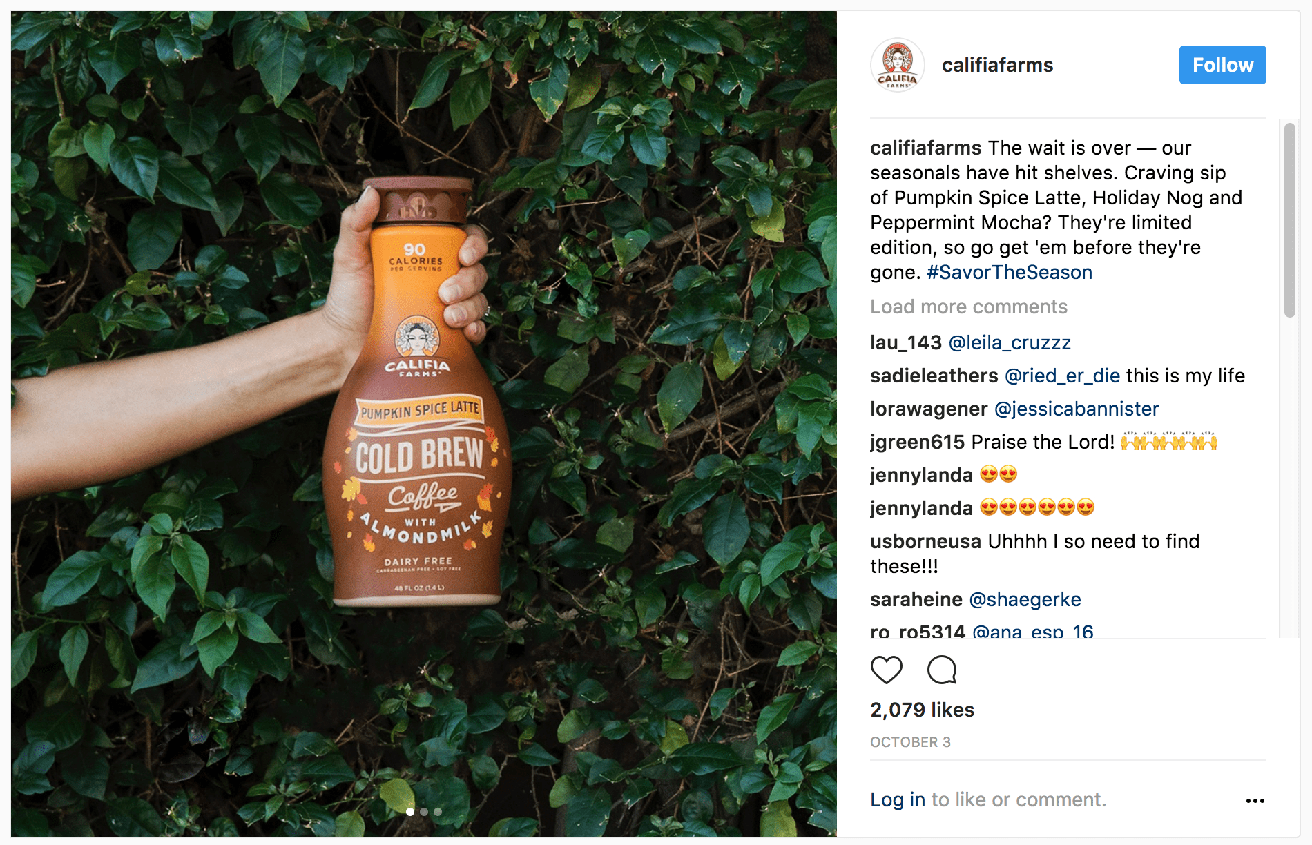 Califa Farms, with 8.2M followers, makes a point of only posting content that is relatable to their audience. They fully understand who their audience is. Too many businesses get off track and post content that is not connected to their business just to post something “pretty”.