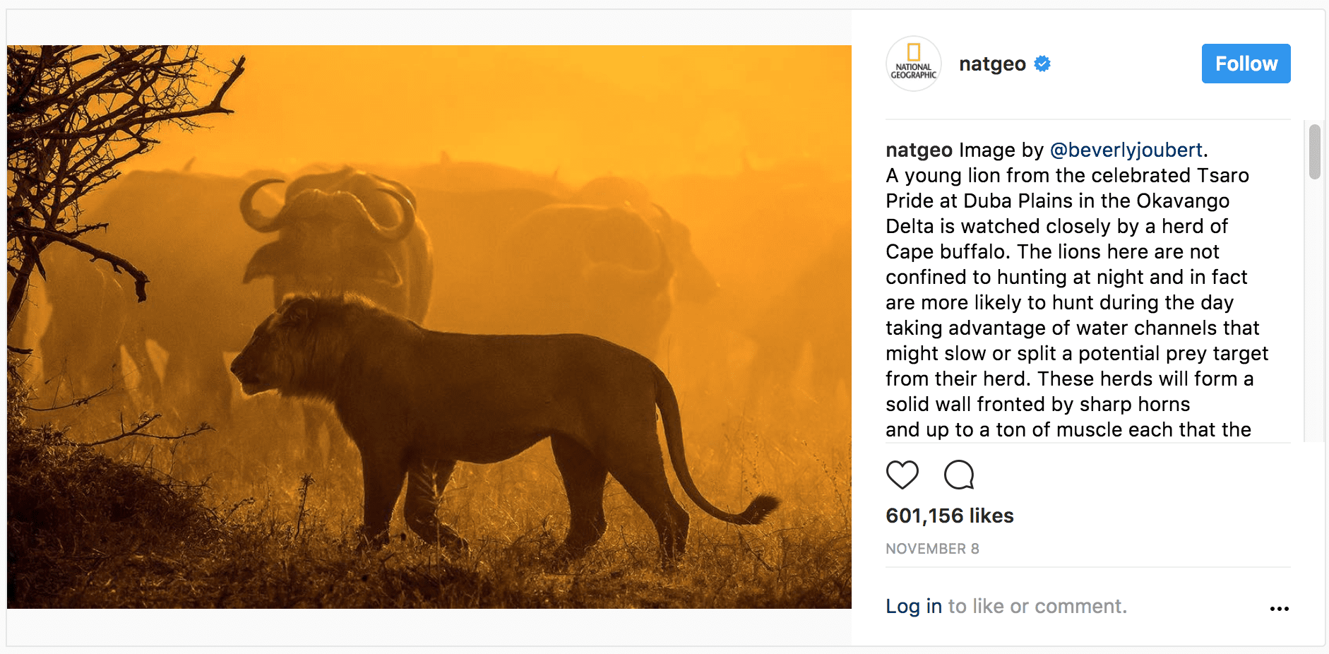 National Geographic not only get likes and shares, but also keeps followers engaged. Each photo posted has something to offer to the viewer. It might be an intro to an interesting story, or a brief tutorial on how an awesome picture was taken.