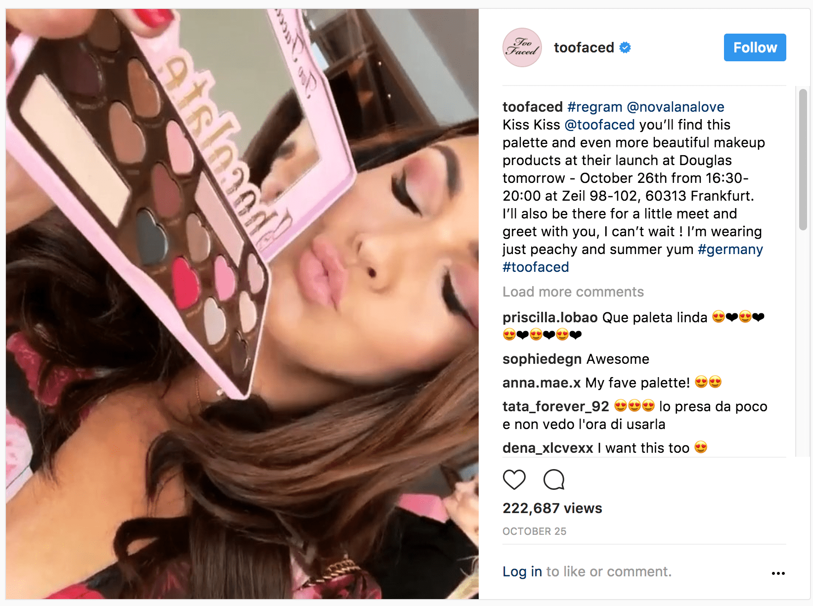 With over 9M followers, Too Faced Cosmetics is the biggest FMCG brand on Instagram.
